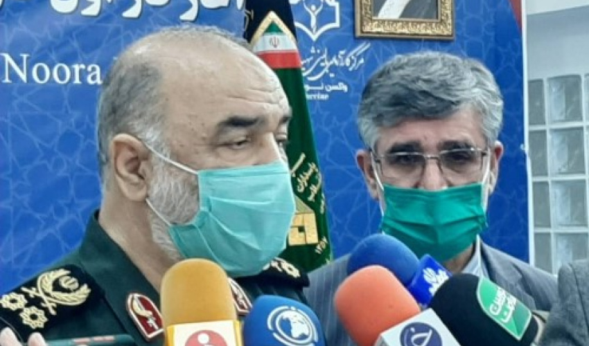 سردار سرلشکر پاسدار «حسین سلامی»، فرمانده کل سپاه پاسداران انقلاب اسلامی روز یکشنبه (۶ تیر ۱۴۰۰) در حاشیۀ آئین رونمایی از واکسن نوترکیب دانشگاه بقیه الله (عج) و آغاز فرآیند کارآزمایی بالینی واکسن «نورا» که در دانشگاه علوم پزشکی بقیه الله (عج) برگزار شد، در جمع خبرنگاران اظهار داشت: «از همان روزهای اولیۀ شیوع ویروس کرونا در کشور، سپاه پاسداران انقلاب اسلامی که همیشه در مواقع خطر پیشتاز است و تلاش میکند در صفوف اول مقابله با مخاطرات بایستد و برای ملت ایران چتری از آرامش، امنیت را ایجاد کند؛ در این مسئله نیز مانند یک میدان نبرد همۀ امکانات و ابزارهای خود را برای مقابله با کرونا به میدان آورد.»