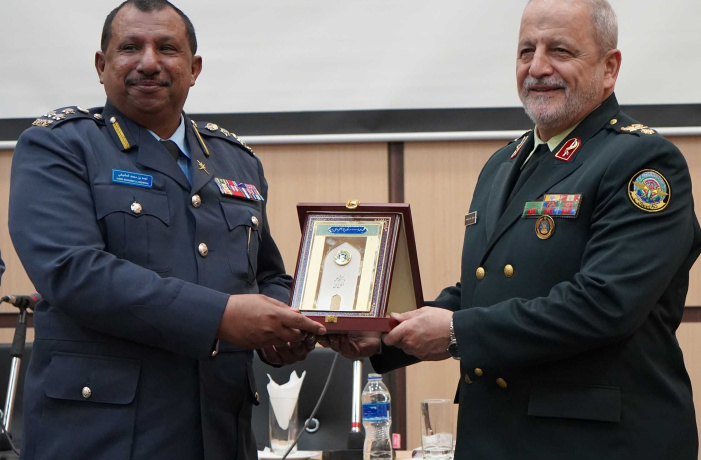 این مراسم با معرفی فعالیت ها و اقدامات آموزشی دانشگاه توسط معاون آموزش و تحصیلات تکمیلی ادامه یافت و سپس سرپرست تیم اعزامی عمان به عنوان آخرین سخنران این جلسه، از دعوت به عمل آمده توسط جمهوری اسلامی ایران تشکر و از مهمان نوازی دانشگاه عالی دفاع ملی قدردانی نمود. وی ضمن اشاره به تاریخ طولانی دوستی میان دو کشور ابراز امیدواری نمود تا روابط دو کشور که برخاسته از نگاه نافذ دو طرف و همچنین به واسطه پل های دوستی که میان دو کشور ایجاد شده می باشد، آینده روابط دو کشور را در تمام زمینه ها به ویژه در حوزه همکاری های نظامی افزایش دهد. وی همچنین به این موضوع اشاره نمود که اگر این تجربه موفق در گذشته وجود نمی داشت، امروز این بازدید و یا همکاری هایی که در حال حاضر میان دو کشور در حوزه تعاملات علمی و تبادل دانشجو وجود دارد به چشم دیده نمی شد. وی در ادامه به این نکته نیز اشاره نمود که روابط مشترکی میان ایران و عمان وجود دارد که باعث گردیده تا دو کشور پیرامون آن جمع شوند که از جمله آنها وجود دین مشترک و احساس برادری میان دو کشور است که در کنار حسن همجواری و همسایگی حائز اهمیت می باشد. وی در پایان، ضمن اشاره به حدیثی از پیامبر گرامی اسلام (ص) در مورد اهمیت رعایت حال همسایگان و سفارش به حقی که در این خصوص داشته اند، برای جمهوری اسلامی ایران به عنوان همسایه ای خوب برای کشور عمان، آرزوی پیشرفت و حرکت مستدام رو به جلو کرد.
