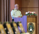در بخش پایانی مراسم، سردار سرتیپ دکتر احمدی مقدم رئیس دانشگاه عالی دفاع ملی، ضمن خیر مقدم به مدعوین و حاضرین و همچنین تبریک حلول ماه ذی الحجه و سالروز ازدواج امام علی (ع) و حضرت فاطمه سلام الله علیها مقدمه سخنان خود را با فرمایش امیرالمومنین علی (ع) آغاز نمود که فرمود: چه مقصد با عزمتی، چه راه طولانی و چه سفر به دوردستی، اما با توشه اندک» و این موجب تاسف است، اگر برای این مقصد مهم توشه راه نداشته باشیم. رییس دانشگاه عالی دفاع ملی، توشه راه را، همان تقوای الهی دانست و بیان داشت بایستی توجه خود را به این دنیا کم کنیم و فرصت ها را از دست ندهیم.