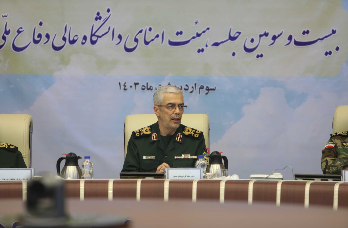 According to the Center for Communications and International Relations of the SNDU, the Chief of Staff of the Armed Forces, during the unveiling ceremony of the comprehensive plan of the University, which was held on Monday, the 22nd of April 2024, with the presence of military and national authorities, emphasized the need for the SNDU to examine the future conditions of the country and the region in the current sensitive circumstances of the region. He stated: "The situation in the region has changed before and after the retaliatory and punitive actions of the Islamic Republic of Iran against sensitive areas and military bases of the Zionist regime."General Bagheri congratulated the victories of the Islamic fighters in the "Vadat-e Sadegh" operation, which was carried out as a strong response to the recent atrocities of the Zionist regime. This response struck a blow against the regime by demonstrating national willpower and had strategic implications, by the grace of God, at both regional and global levels. General Mohammad Bagheri added, "The armed forces thoroughly study and analyze possibilities and scenarios at the operational level, and the SNDU should pay attention to these matters at the strategic level.""He noted that the SNDU, as the highest-ranking university of the armed forces, responsible for training commanders, senior managers of the armed forces, as well as national-level senior managers in strategic matters, has been on a path of growth and advancement. He stated, 'The SNDU, in training commanders, officials, and other personnel, as well as in theoretical discussions and courses, should aim for the highest level of excellence and attention. We should constantly work towards improving the quality and depth of research and activities and move forward.'The Chief of General Staff of the Armed Forces emphasized that the comprehensive plan of the SNDU is considered a fundamental document and the mother plan that should be implemented at the university. He said, 'This plan was prepared over a year and presented to the esteemed Leader, who studied and critiqued it and provided feedback for improvements and finally, it was approved by His Eminence, and today we unveil this plan.'General Bagheri concluded by stating, 'We all should strive for the precise implementation of the comprehensive plan of the university, and undoubtedly, this plan will further elevate the university.'"
